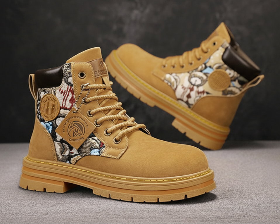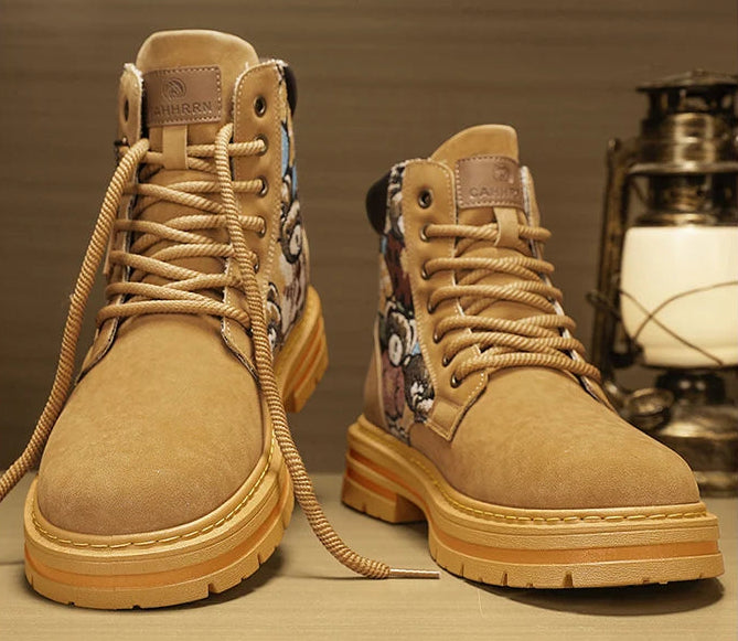 Men’s Low-Top Leather Boots – Motorcycle Style, Comfortable Casual and Outdoor Lace-Up Boots