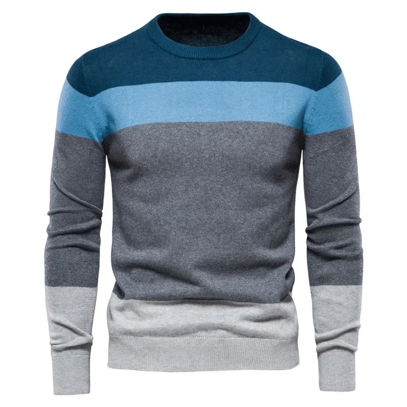 Men’s Casual Striped Knit Sweater – Modern Style for Fall and Winter