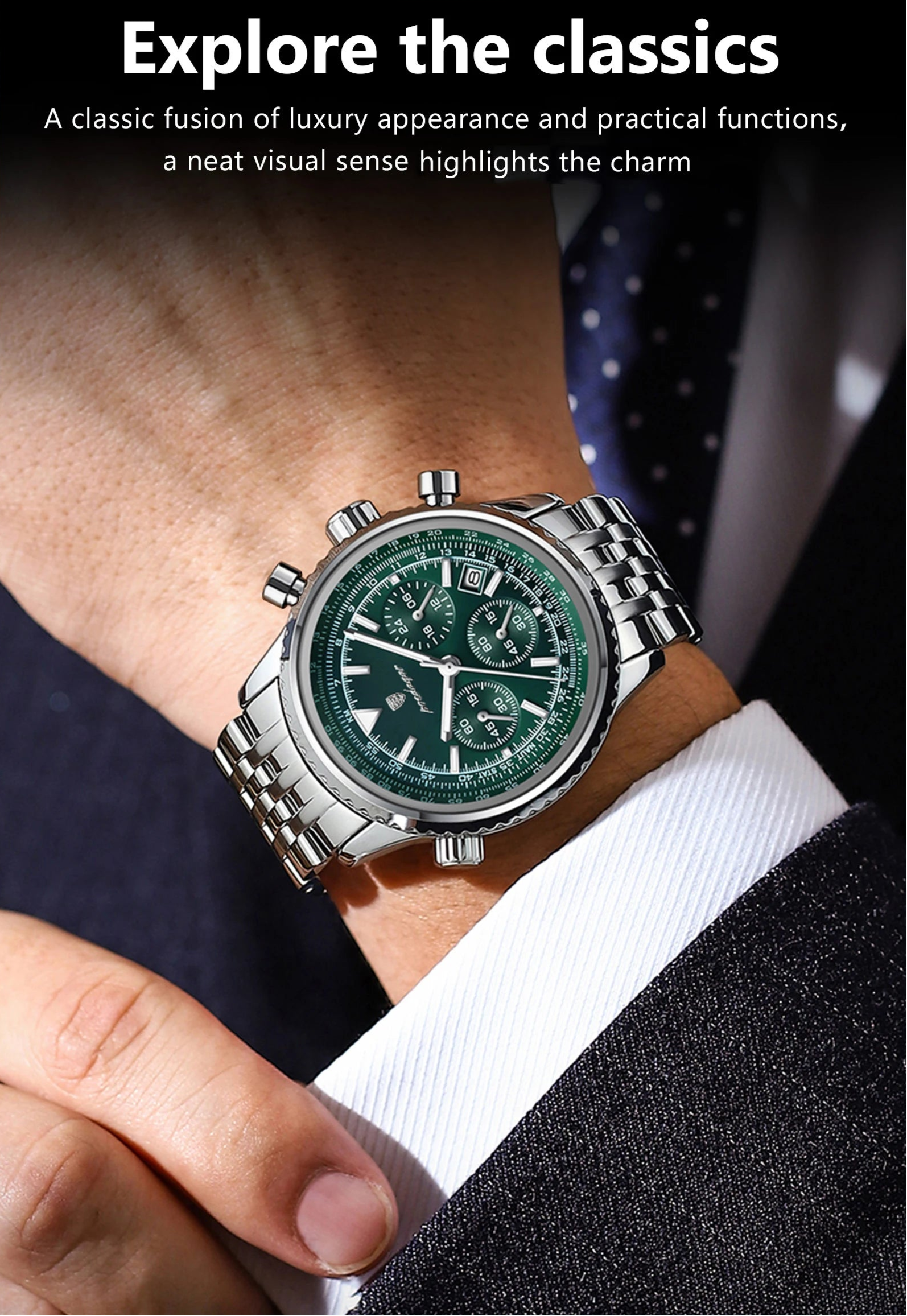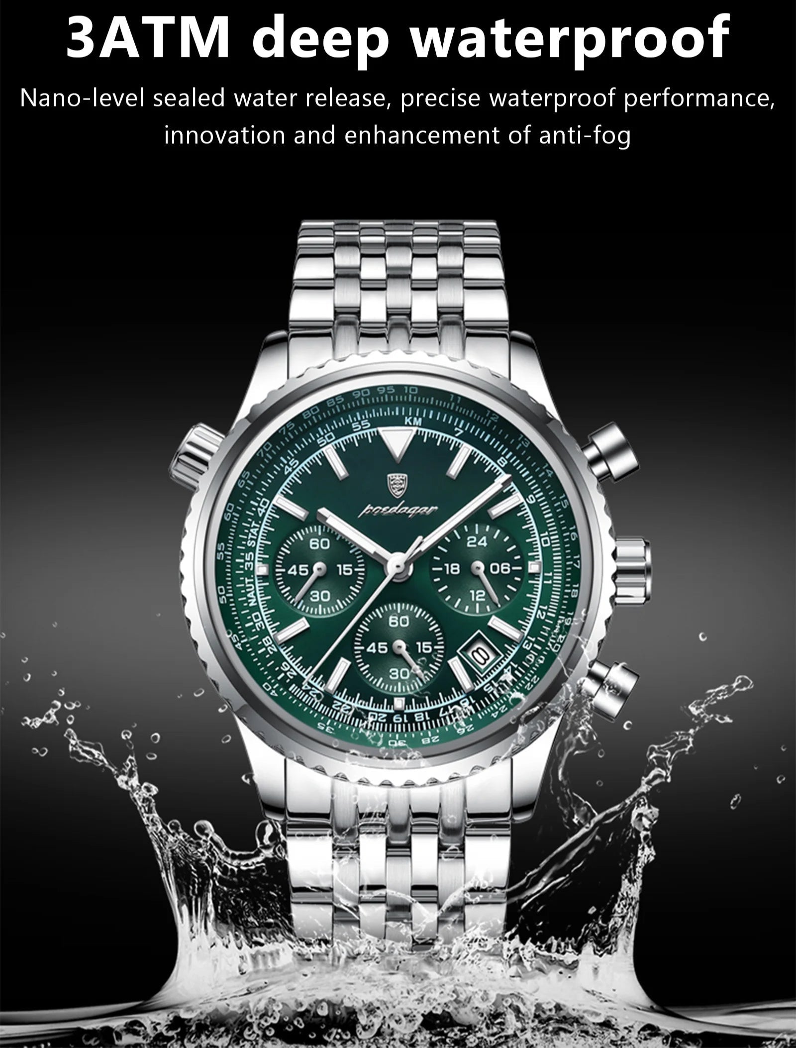For men who value both style and precision, this luxury watch blends sophistication with performance. Its multifunction dial features active chronographs and a date display, combining utility with refined aesthetics.