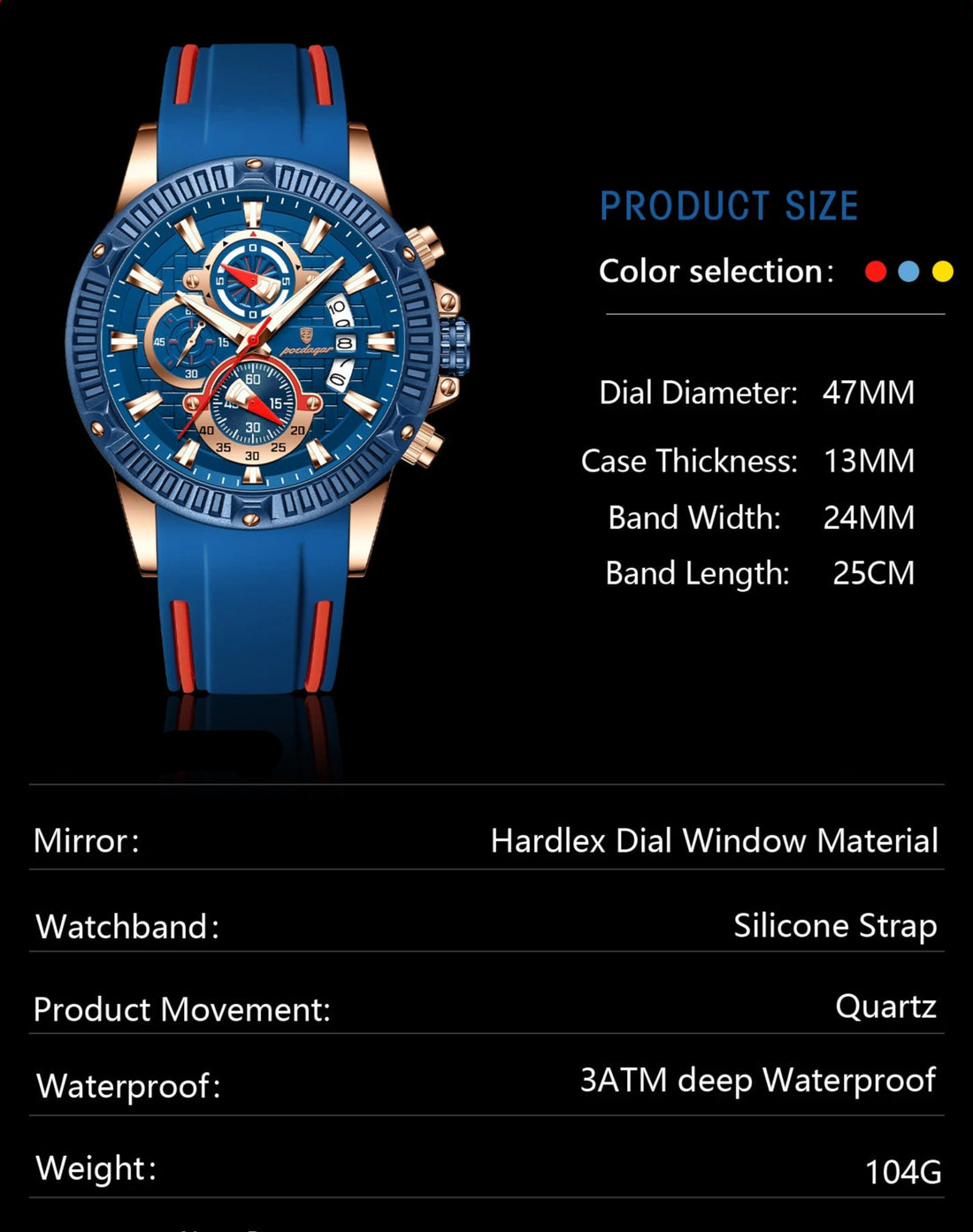 Men’s Sport Watch with Silicone Strap — Bold Design & Versatile Look