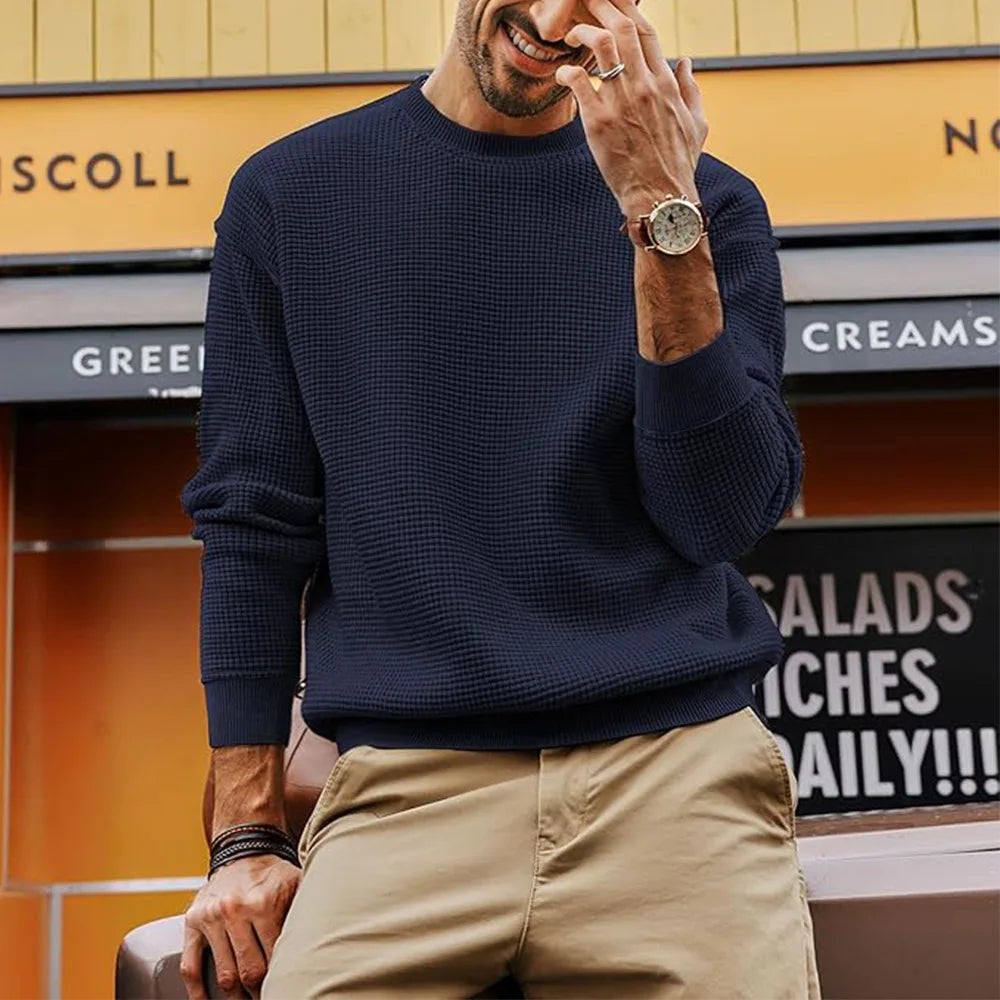 A sweater that blends simplicity and style into a versatile must-have for any man’s wardrobe. Featuring a subtle texture and relaxed fit, it’s the perfect choice for modern, effortless casual looks.