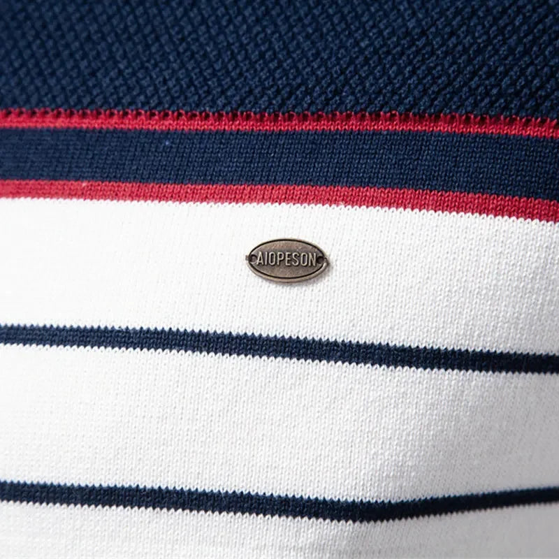 This sweater features a classic striped pattern with a subtle chest detail for a clean stylish and easy to match look