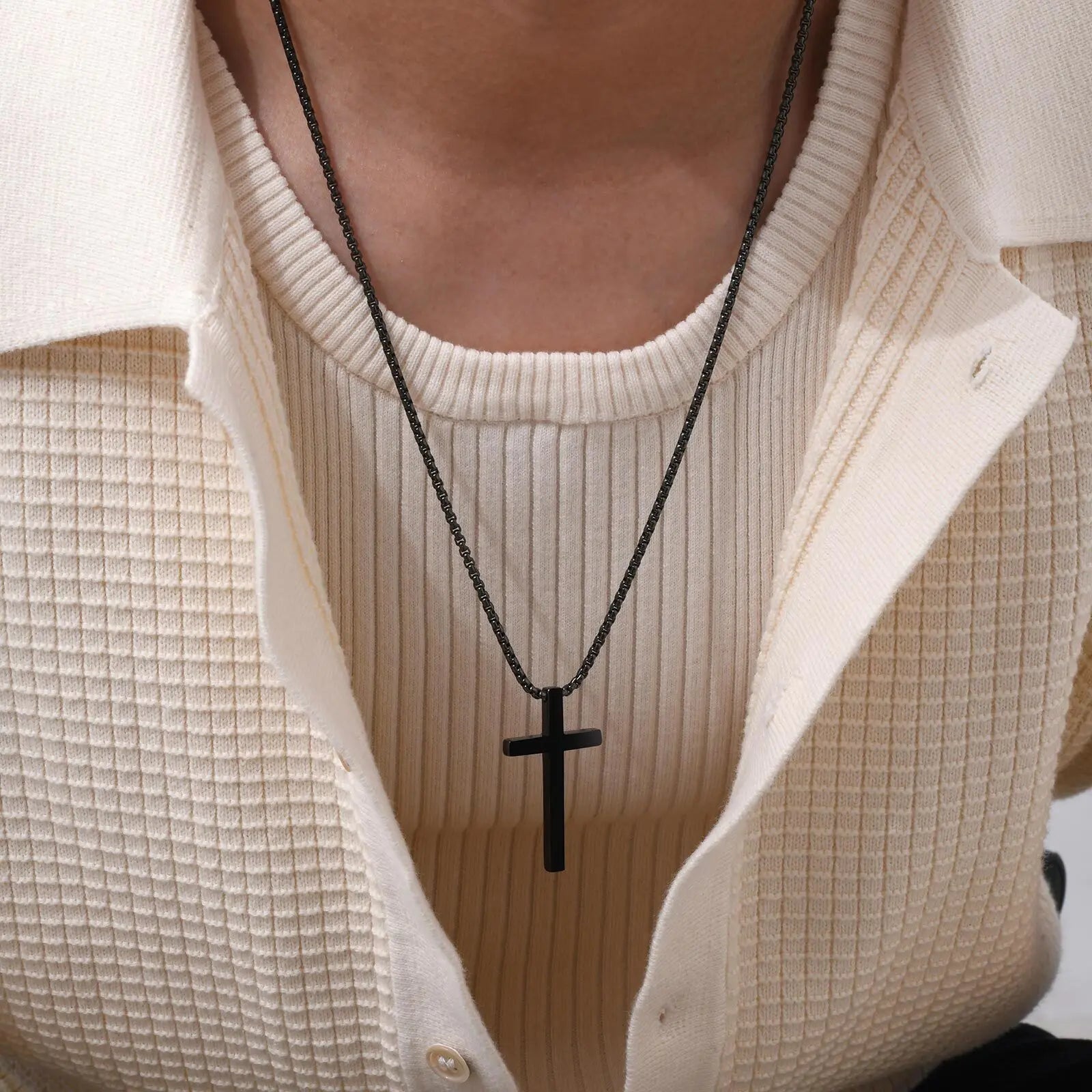 Classic Men's Cross Pendant Necklaces,Waterproof Stainless Steel Cross Collars