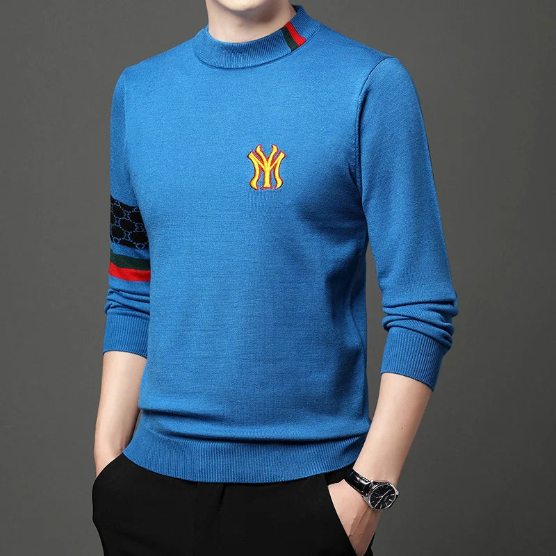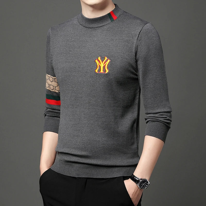 Men’s Slim Fit Knit Sweater with Sporty Sleeve Detail – Urban Elegance with Attitude