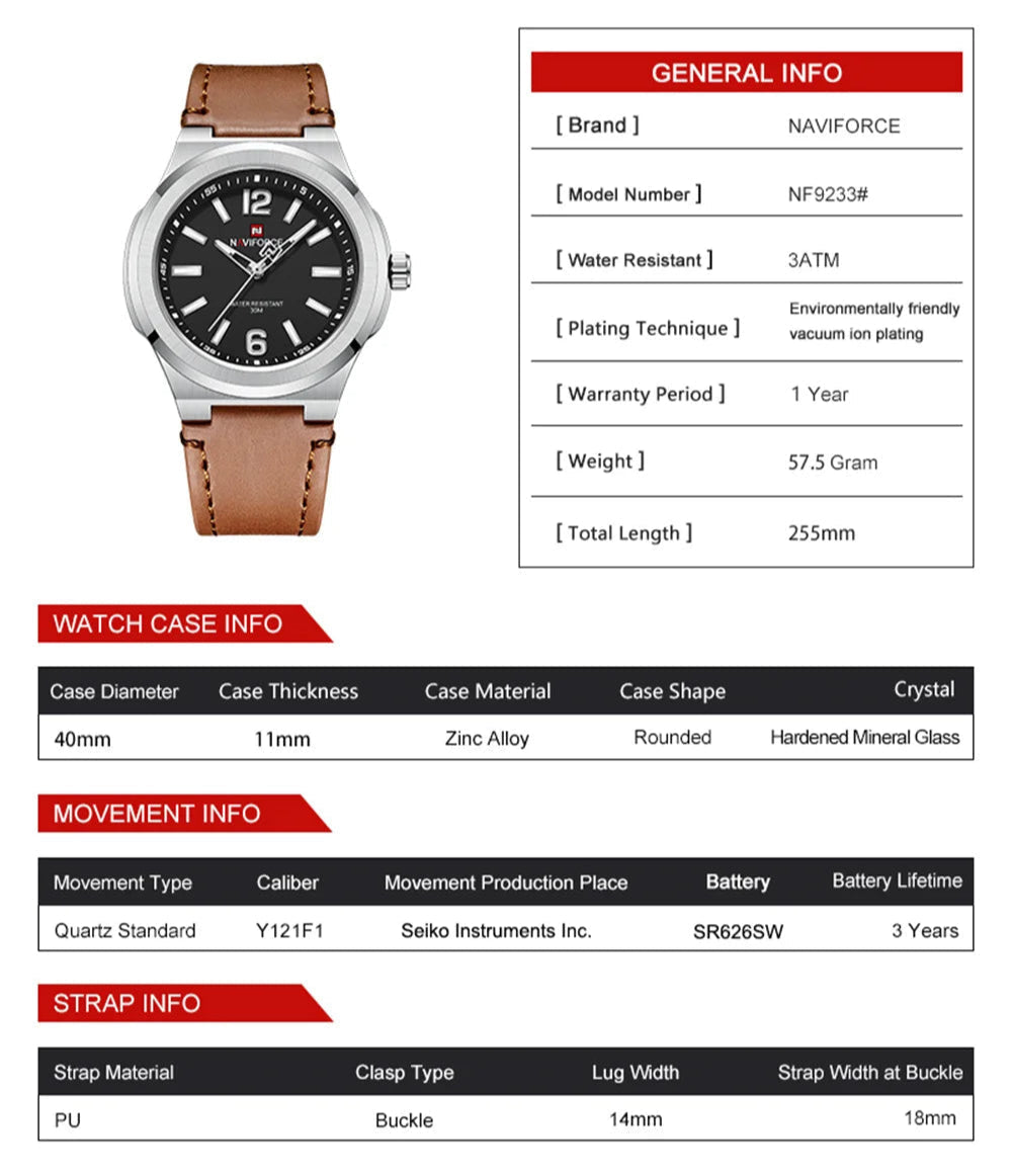 Sleek, reliable, and built for everyday style. This watch features a minimalist dial, durable stainless steel case, and a soft leather strap for comfort and sophistication.
