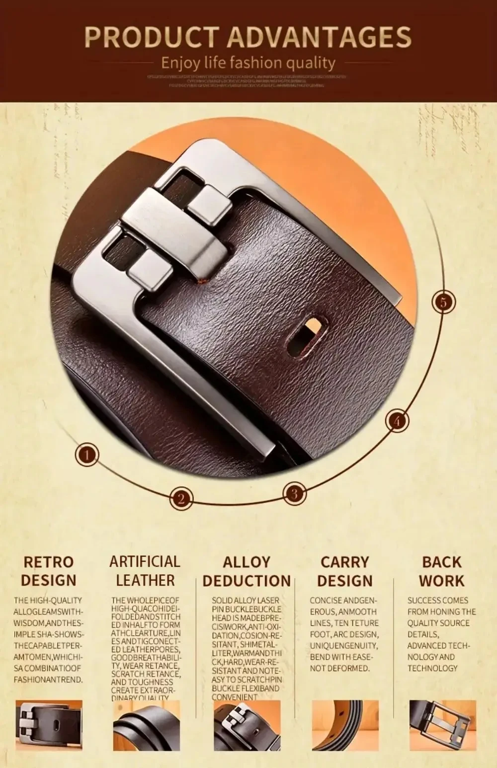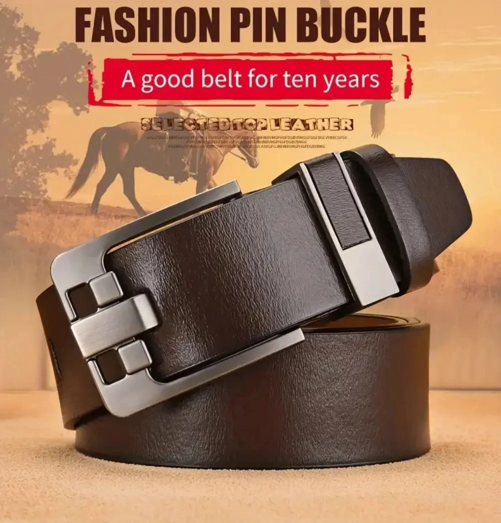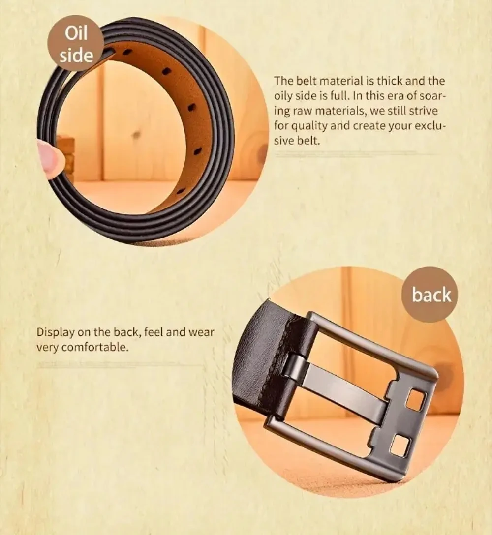 Men’s Genuine Leather Belt with Modern Metal Buckle – Durable and Adjustable