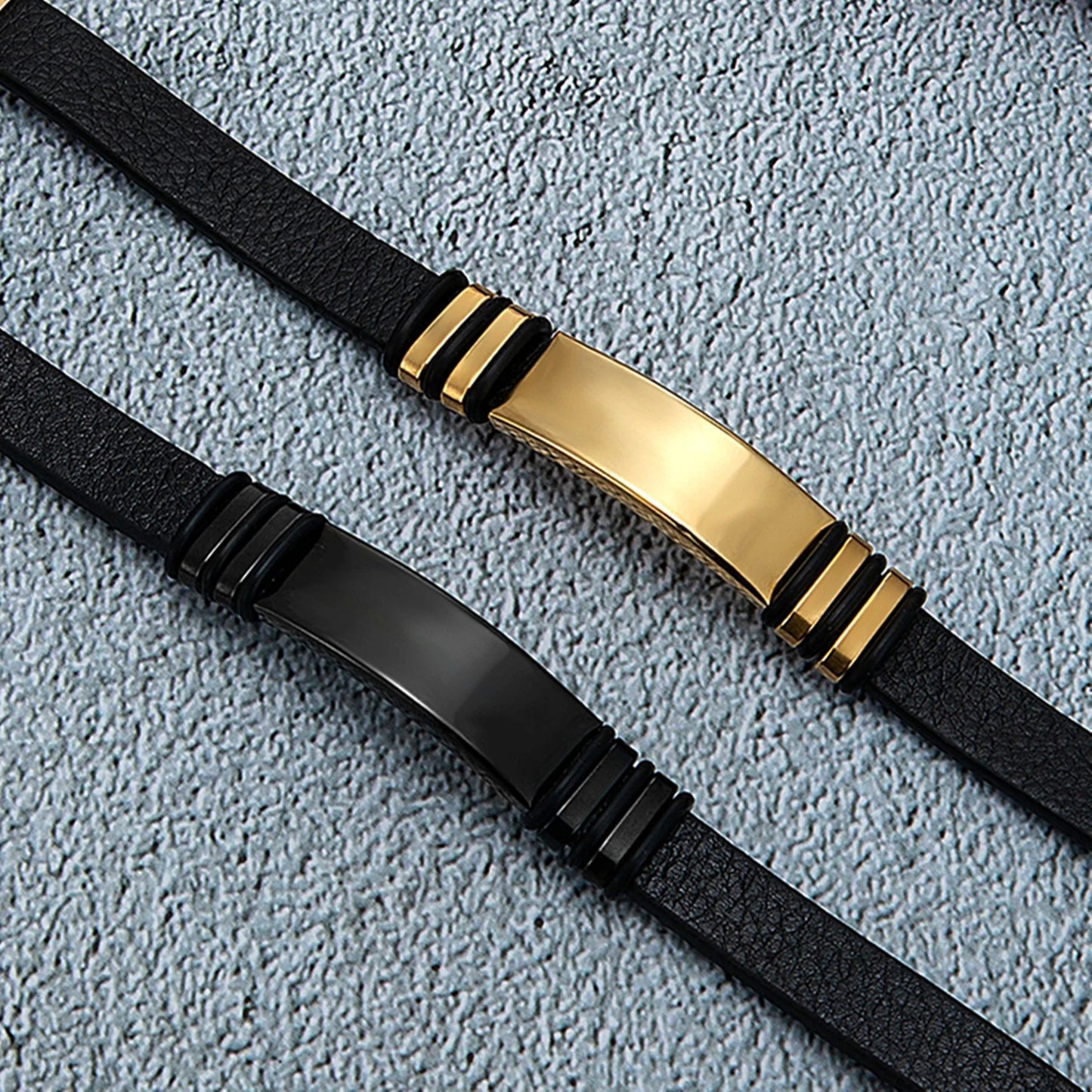 Elevate your style with this Men’s Leather Bracelet, designed with a sleek stainless steel plate in black or gold finish. The minimalist design makes it a versatile accessory, perfect for both casual and formal looks.Crafted with durable leather and premium steel, it offers comfort and long-lasting wear. Whether worn alone or paired with other bracelets, it adds a refined touch to any outfit.