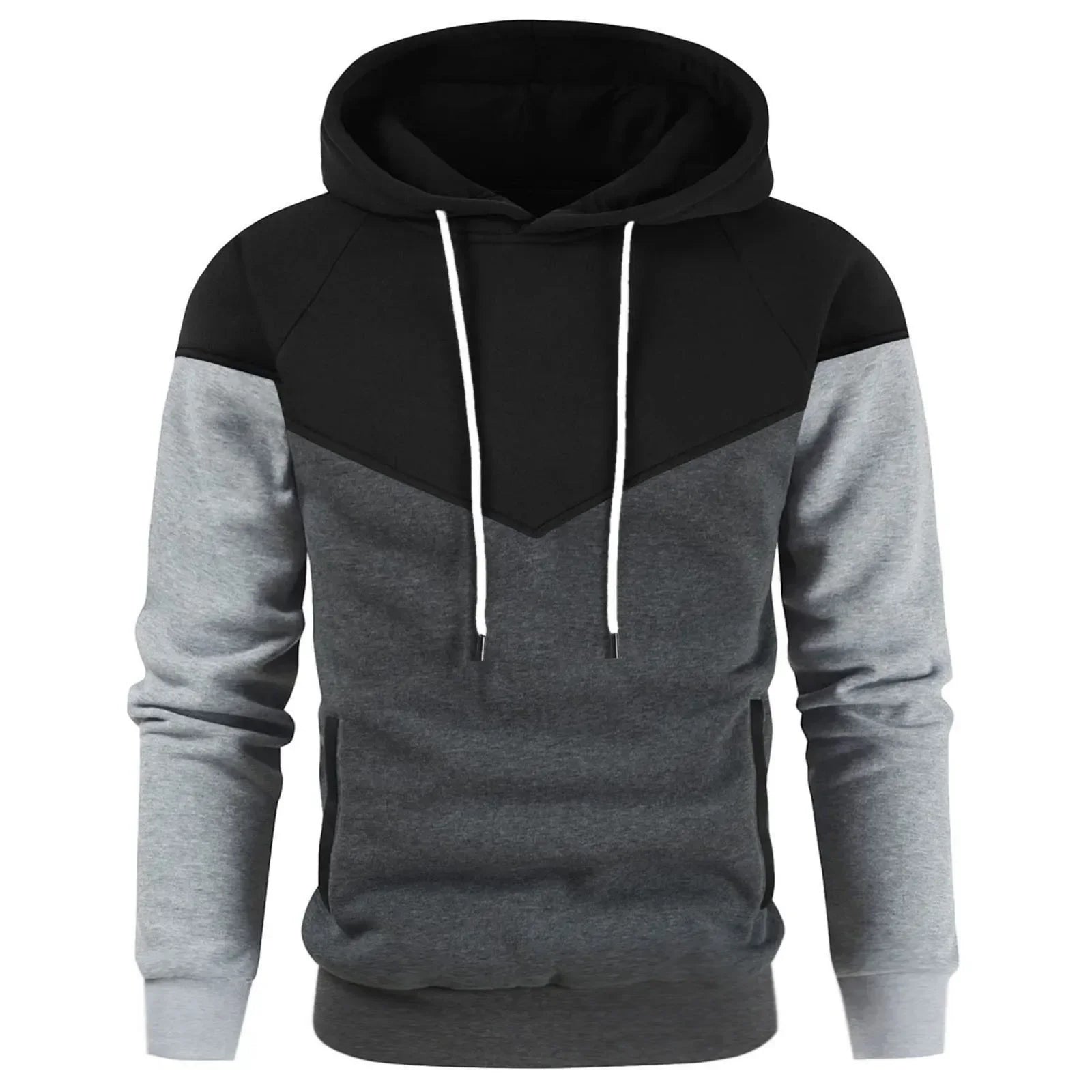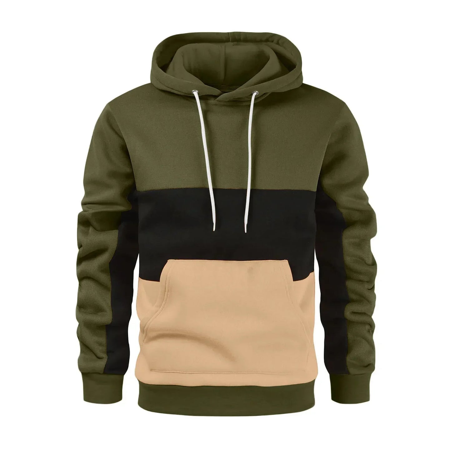 Men’s Modern Geometric Panel Pullover Hoodie – Casual Streetwear for Everyday Comfort