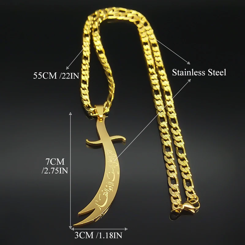 Islamic Imam Ali Zulfiqar Sword Pendant Necklace for Women Men Stainless Steel Gold Color Arabic Religion Chain Jewelry