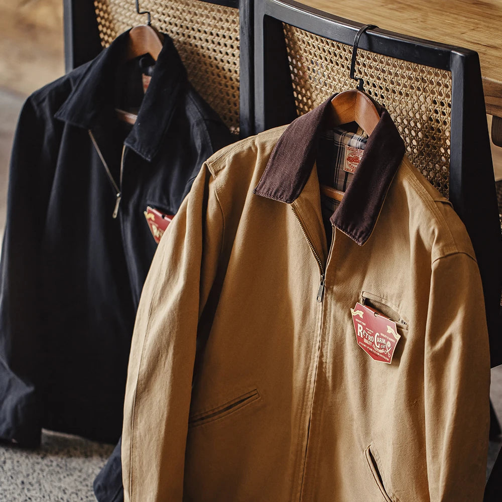 Men’s Workwear Style Jacket with Front Zipper and Utility Pockets