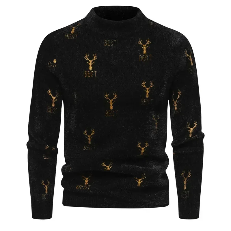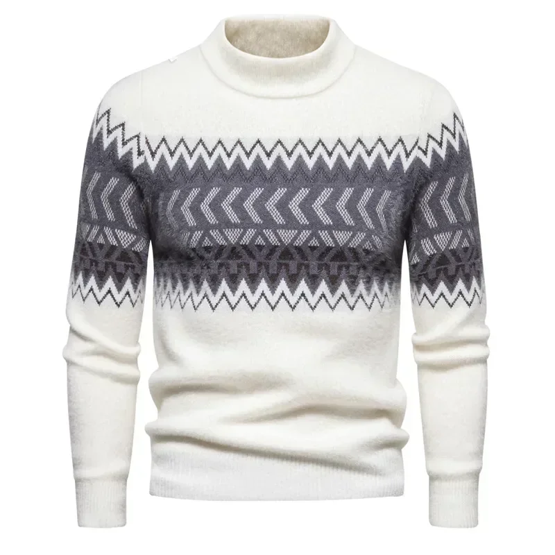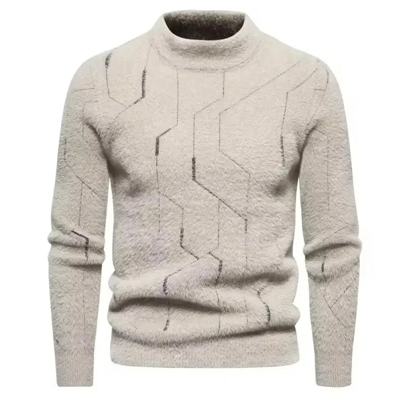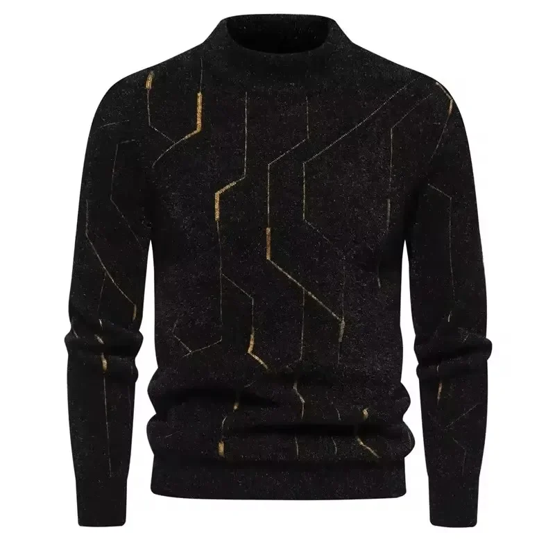 Men’s Crew Neck Patterned Knit Sweater – Minimalist Style with Geometric Detailing