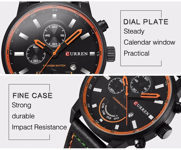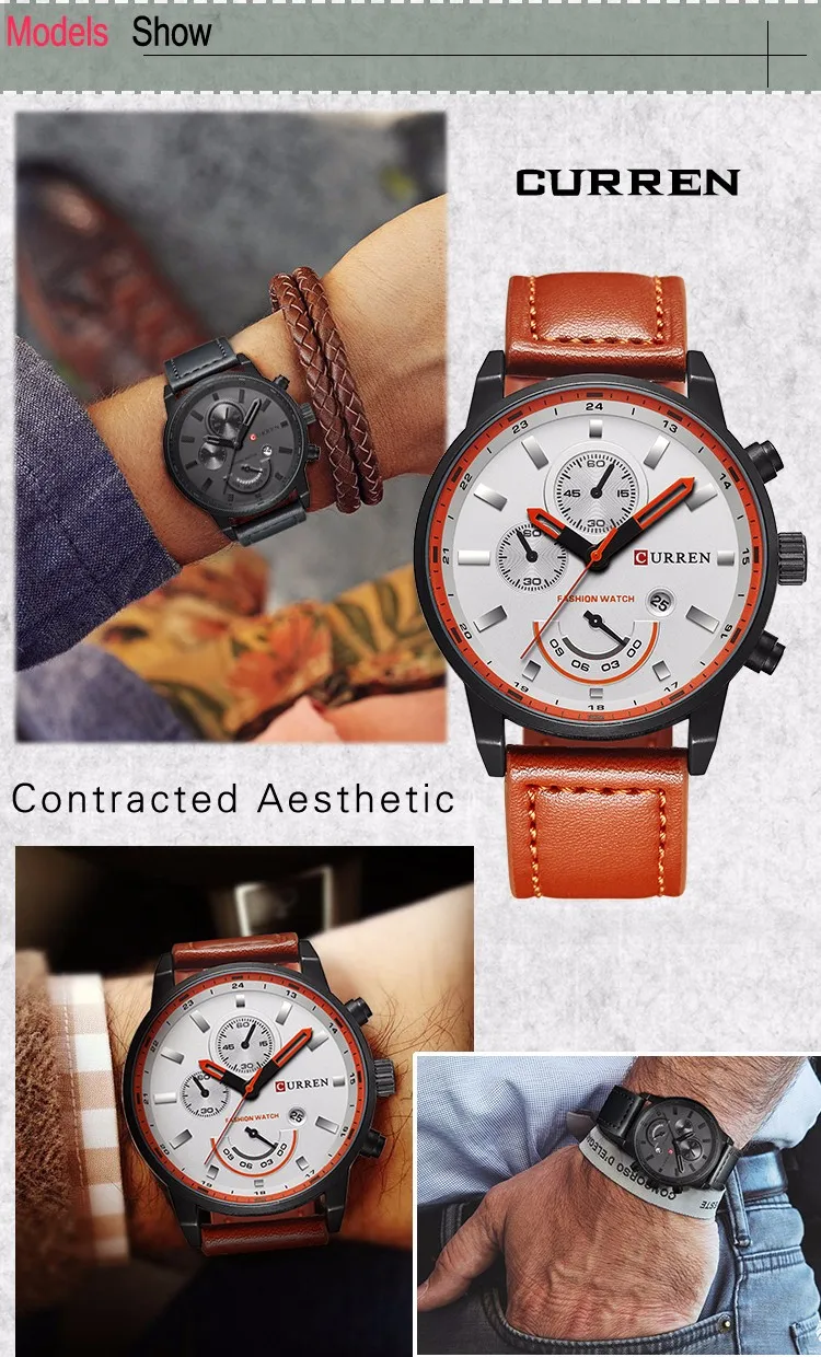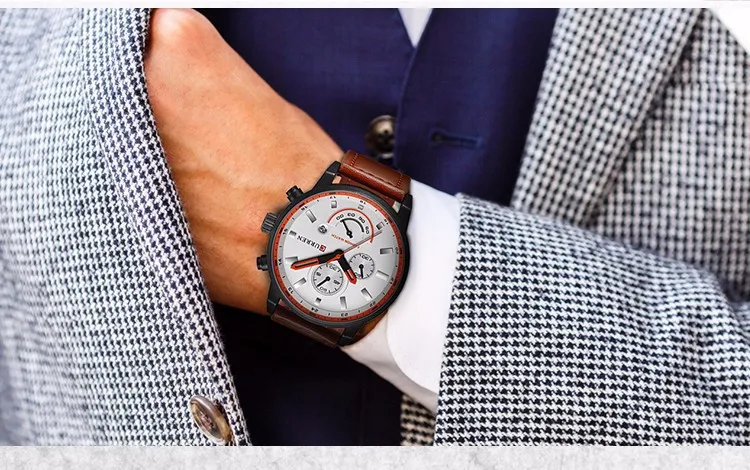 With a durable case and high-quality leather strap featuring detailed stitching, it ensures comfort and longevity. The quartz movement provides reliable accuracy, while the chronograph and calendar functions add practicality to its striking design. It’s an accessory that reflects personality and presence, completing the look of those who like to stand out.