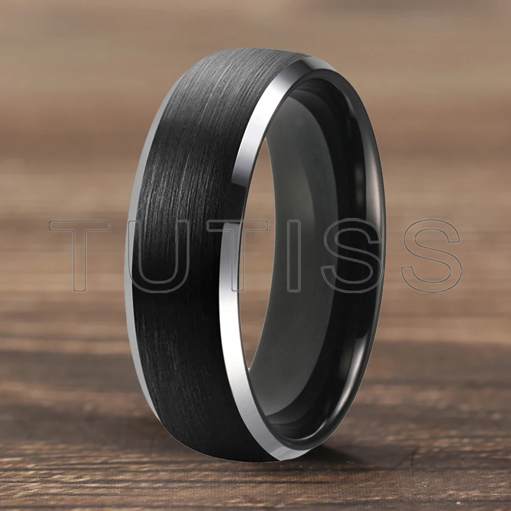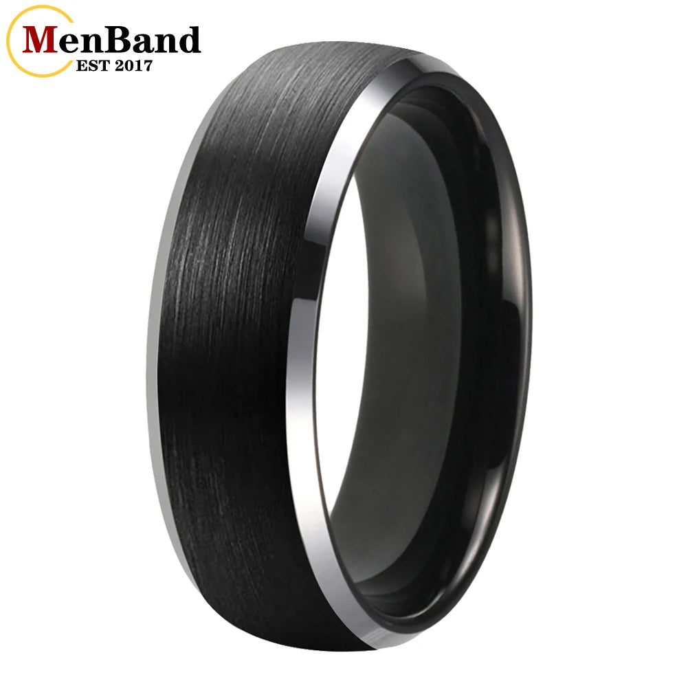 6/8mm Tungsten Carbide Engagement Ring for Men, Modern Engagement Ring Dome, Brushed Slant Edge