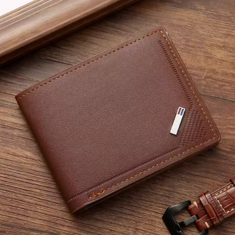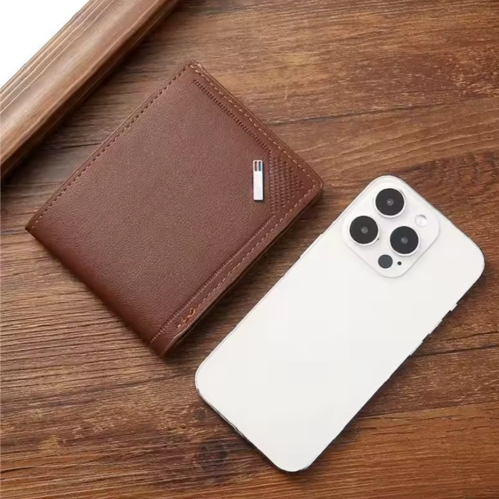 Carteira Clássica Masculina de Couro – Bloqueio RFID, Fina e Estilosa (3 Cores)