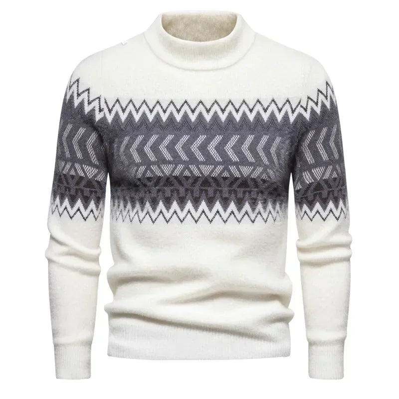 Men’s Crew Neck Patterned Knit Sweater – Minimalist Style with Geometric Detailing