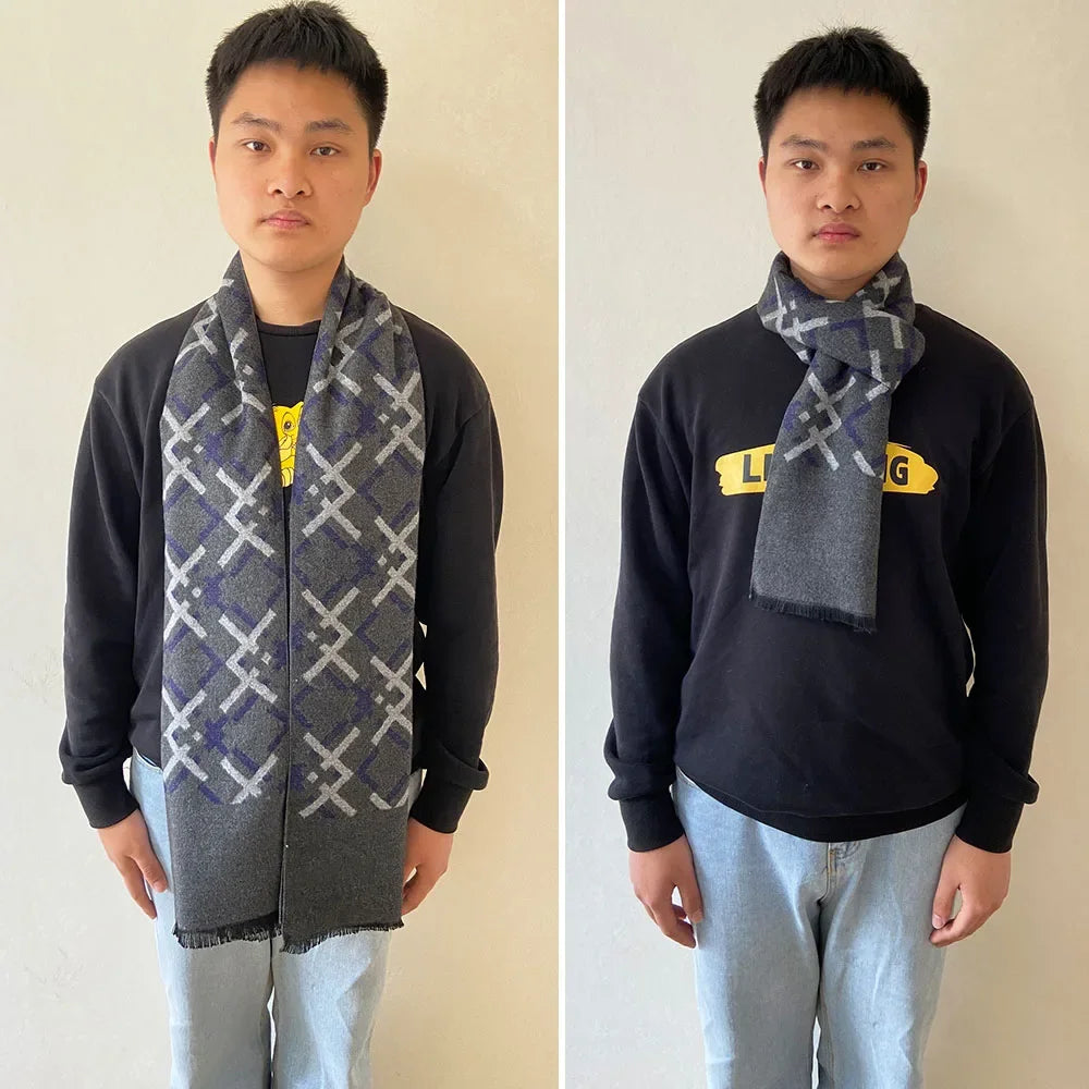 This scarf was designed for men who value style and sophistication in every detail. Featuring a modern woven pattern with striking black and grey contrasts, it’s the perfect accessory to elevate any winter outfit, whether casual or formal.